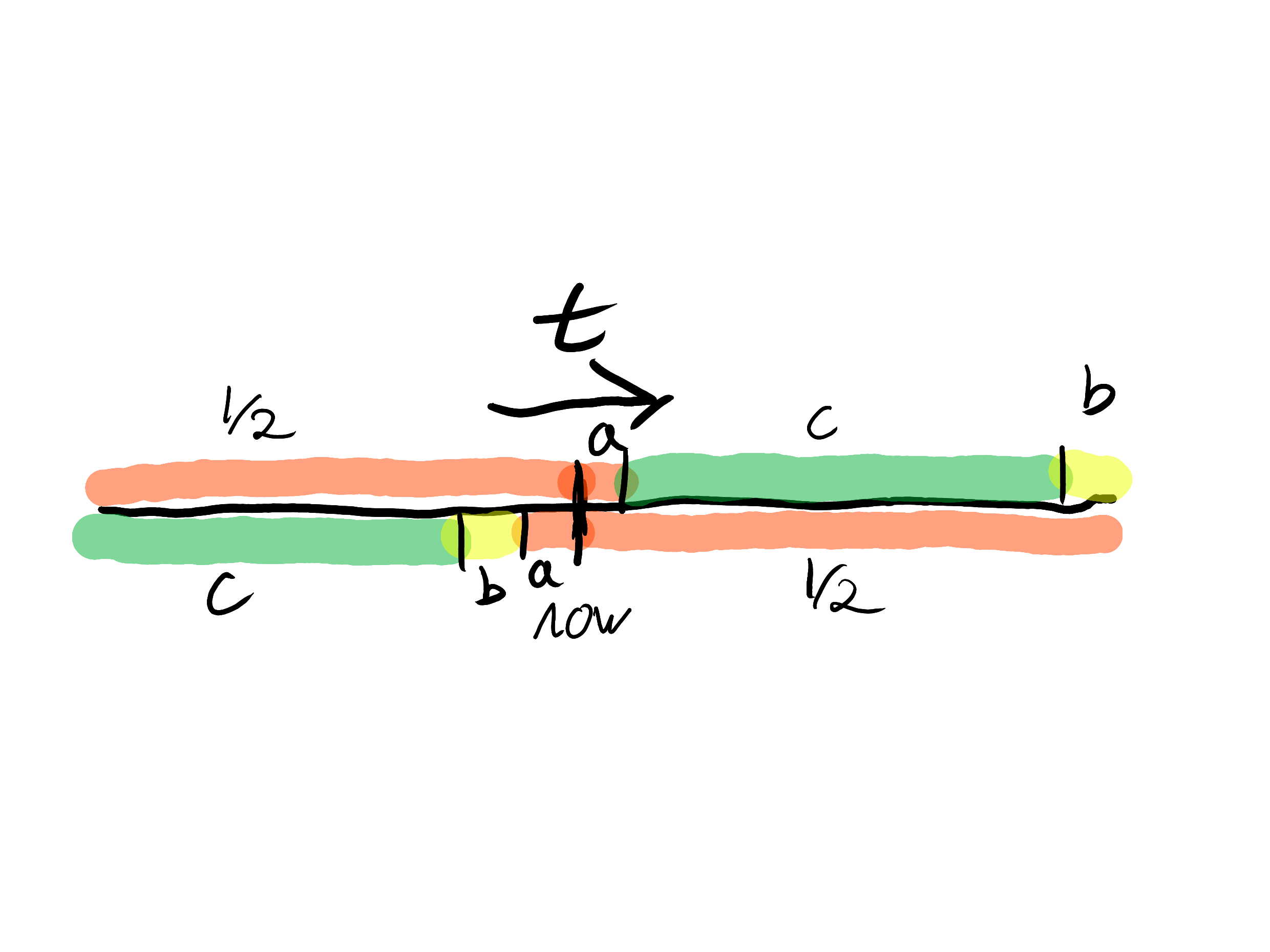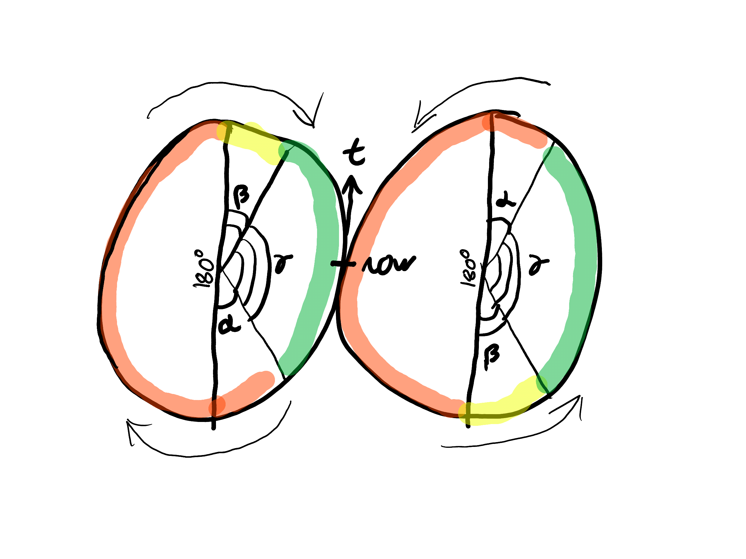 I made up a cooler diagram of two "gears" of stoplight colors with angles representing the color-time versus the boring line segments above: